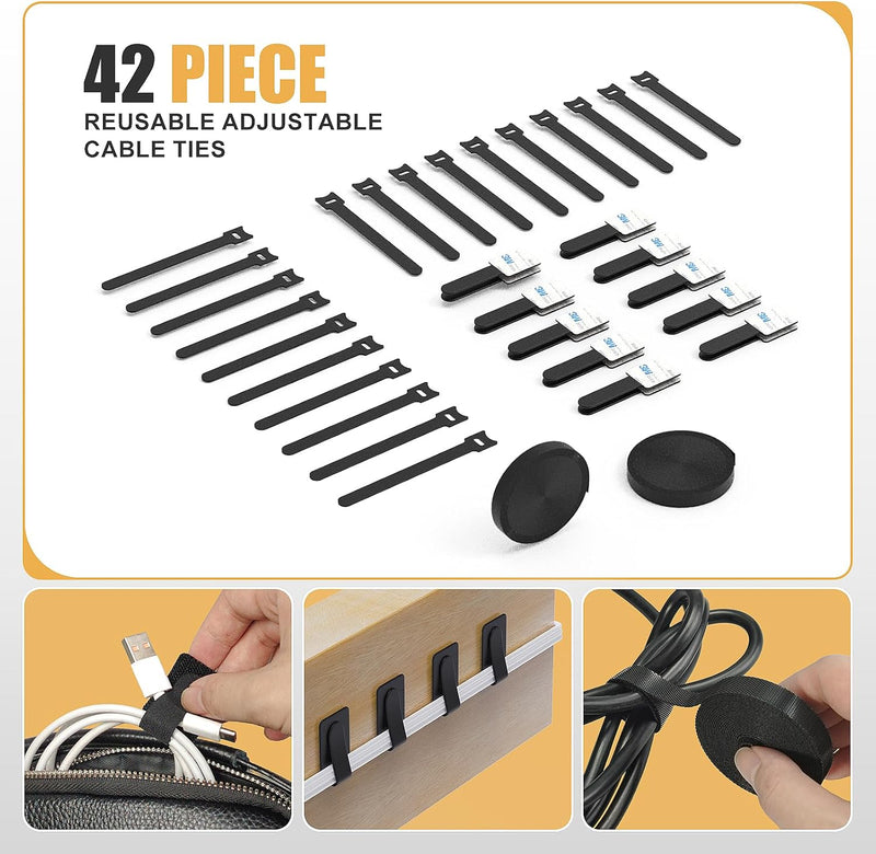 Crafted from high-strength, non-toxic materials, the kit includes stick-on mounts for damage-free installation, reusable ties for easy adjustments, and cord protectors to prevent wear at friction points. Whether you’re corralling computer cables, taming TV wires, or securing power cords, this kit has the right component for every cable challenge.