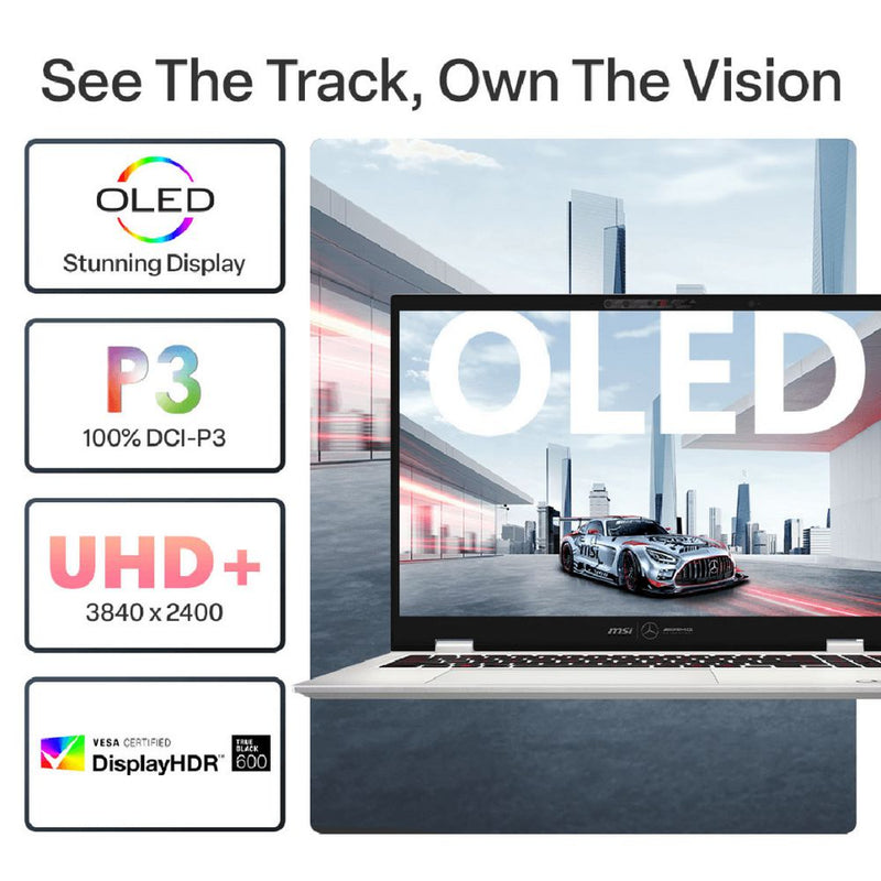 Experience luxury engineering and AI-enhanced performance with the MSI Prestige 16 AI+ Mercedes-AMG Edition. Crafted in collaboration with Mercedes-AMG, this premium device combines motorsport-inspired aesthetics with cutting-edge computing power. Powered by the Intel Core Ultra 9 288V processor, Intel Arc Graphics, and 32GB of high-speed memory, it delivers exceptional performance for creators, developers, designers, and business professionals. The ultra-light 1.5 kg magnesium-alloy chassis, 2TB SSD, and professional 4K UHD display make it a powerful yet elegant productivity companion.