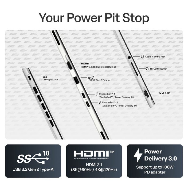 USB-C with DisplayPort, USB-C PD, HDMI (varies by configuration) |