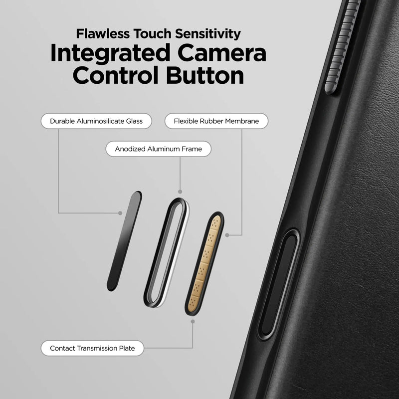 Made from world-renowned Horween® leather, the Nomad Modern Leather Case — Horween® Edition for iPhone 17 Pro offers a timeless, rugged aesthetic that evolves with use. Its vegetable-tanned leather develops a unique patina, while the 360° TPU bumper provides up to 8 ft of drop protection. Designed for everyday function, the case supports MagSafe + Qi2 wireless charging and features refined elements like a precision glass Camera Control button, anodized aluminum buttons, and a soft microfiber lining.