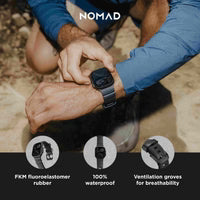 The Rocky Point Band in Storm brings a refined, technical aesthetic to your Apple Watch Ultra. Engineered from compression-molded FKM fluoroelastomer rubber, it offers exceptional durability, flexibility, and heat resistance for everything from daily training to rugged outdoor adventures. Its storm-gray tone pairs seamlessly with the Apple Watch Ultra’s titanium design, delivering a sleek, modern look.