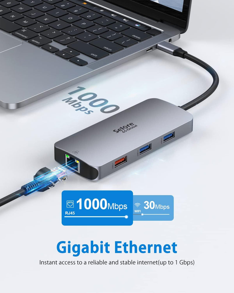 Boost your connectivity with the Selore&S-Global 9-in-1 USB-C Hub. Designed for MacBook Pro/Air, Dell, HP, Lenovo, and other USB-C laptops, this compact hub delivers ultra-fast data transfers, 4K HDMI output, and Gigabit Ethernet in one portable package.