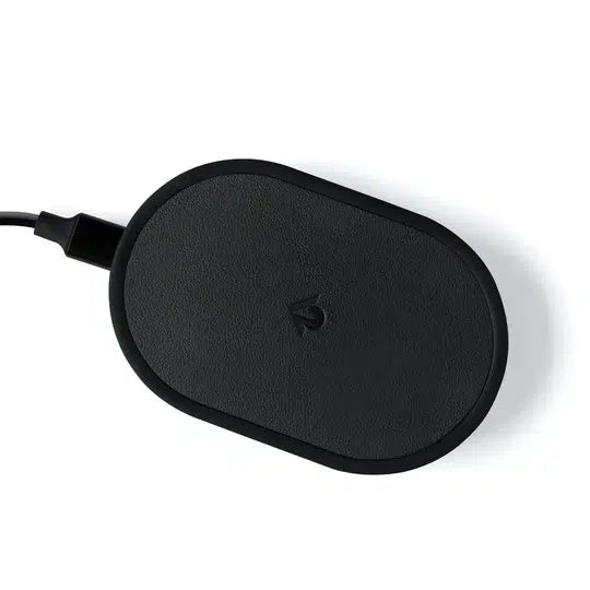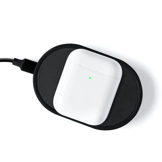 The Twelve South HiRise Wireless combines luxury materials with clever versatility to create a premium 3-in-1 wireless charging experience. Crafted with polished chrome metal and a leather-topped base, it serves as an upright phone stand, a Qi charging pad for AirPods, and a detachable portable charging disc for travel. Its compact footprint enhances any desk or bedside setup while keeping your device upright for easy viewing.