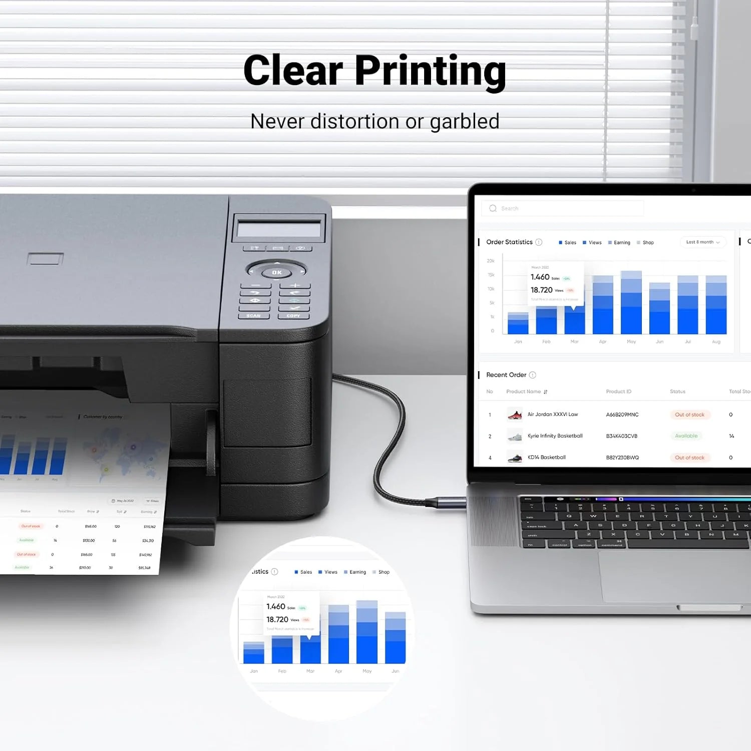 UGREEN USB-C to USB-B 2.0 Printer & Scanner Cable (1m).